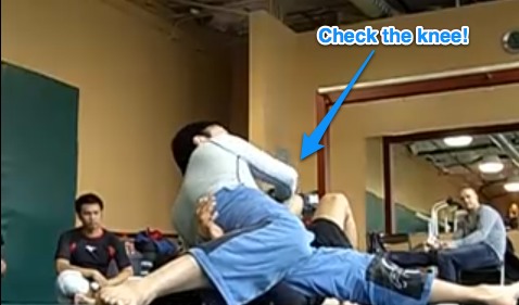 I can’t begin to stress this tip enough. Checking the knee in Twister Side Control is important for two reason. By checking the knee I am creating a post that helps me push my back and ribs into my partner’s face. If my partner is able to get his hands onto my back and push my down towards his feet, then I can use this post to help me push back up into my position. Checking the knee is also important for those of us who don’t want to go home with black eyes. By checking this knee you are preventing your partner from throwing his leg up and “accidentally” kneeing you in the face.
